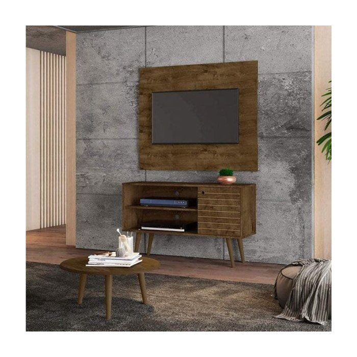 Conjunto Rack com Painel Mesa de Centro para TV até 42 Polegadas Jade Móveis Bechara Madeira Rústica