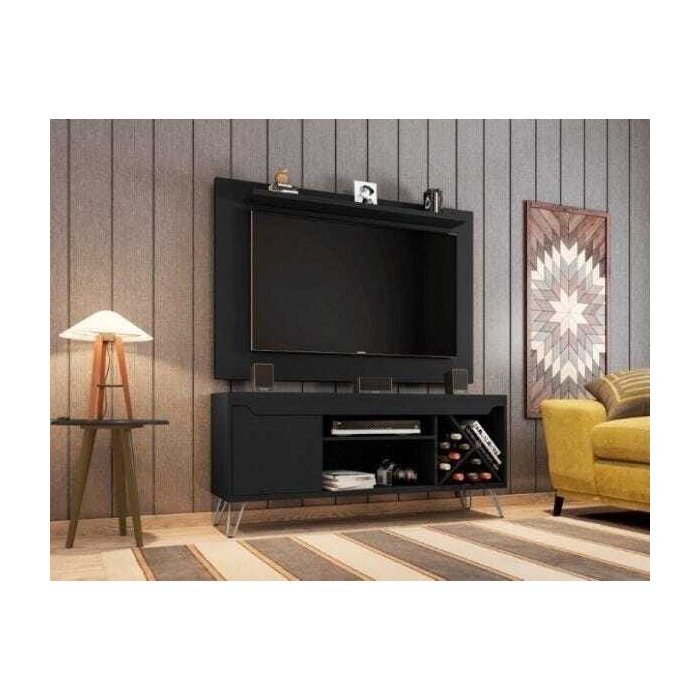 Conjunto Rack com Painel para TV até 50 Polegadas com Pés de Aço Kenzo Preto Fosco