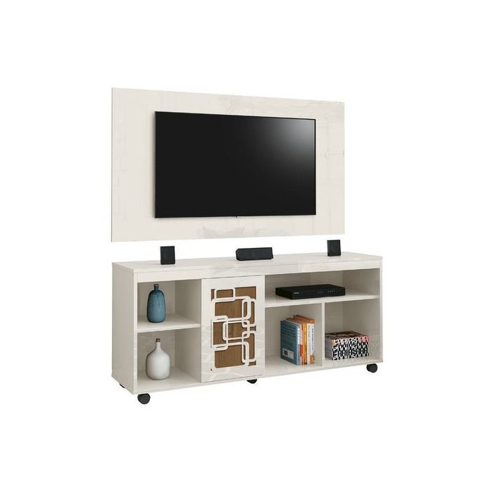 Conjunto Rack com Painel para TV até 50 Polegadas Polegadas Off White/Naturale