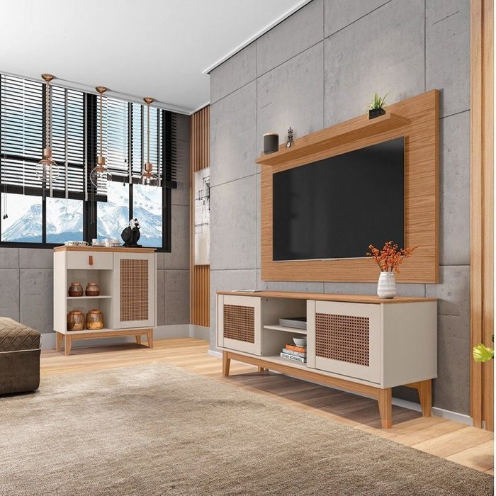 Conjunto Rack com Painel para TV até 60 Polegadas Retrô Safira Aparador Rubi Casa D Noce/Off White