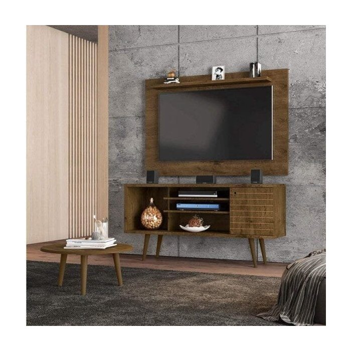 Conjunto Rack com Painel Safira e Mesa de Centro para TV até 50 Polegadas Móveis Bechara Madeira Rústica