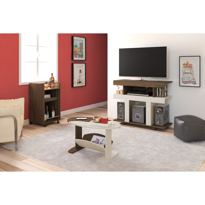 Conjunto Rack Guaíba + Bar Brito + Mesa de Centro Ísis Amêndoa/Off White - Artely