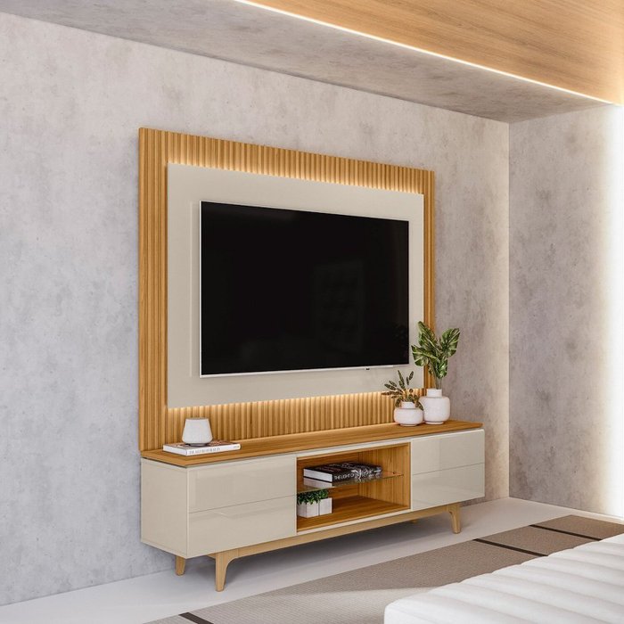 Conjunto Rack Miami + Painel São Paulo 2.0 Tauari/Off White Brilho