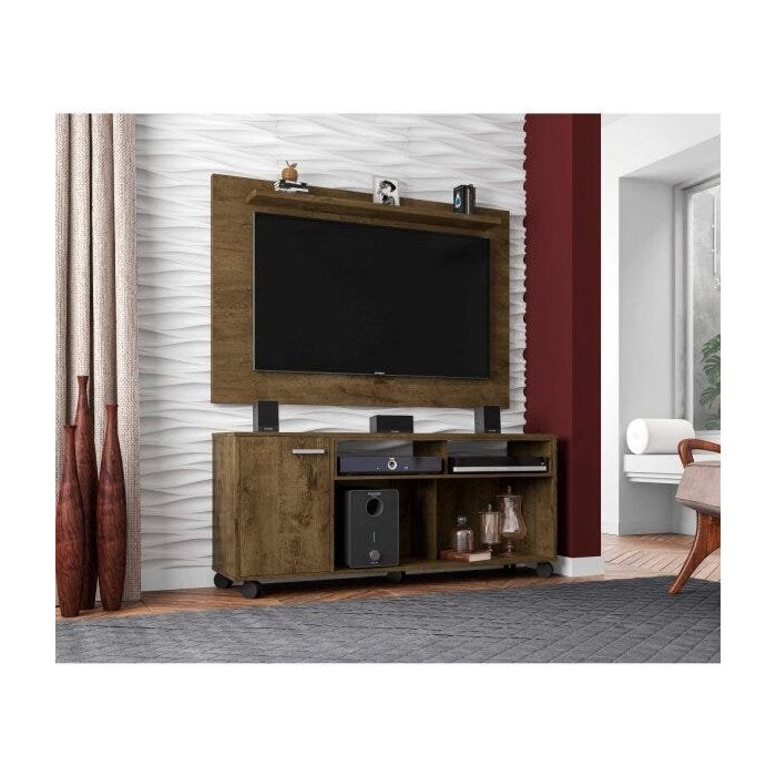 Conjunto Rack New Creta e Painel Kenzo para TV até 50 Polegadas Móveis Bechara Madeira Rústica