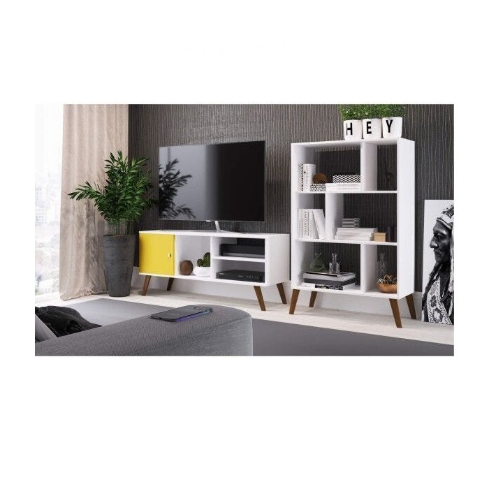 Conjunto Rack para TV 42 Polegadas e Estante 6 Nichos 380789 Espresso Móveis Branco