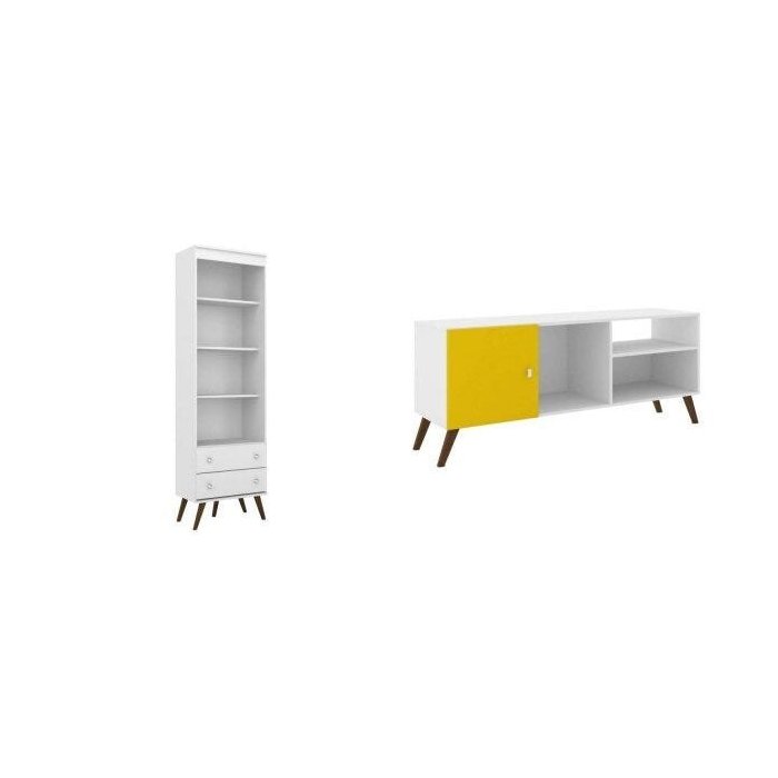 Conjunto Rack para TV até 42 Polegadas e Estante Retrô Espresso Móveis 380790 Branco
