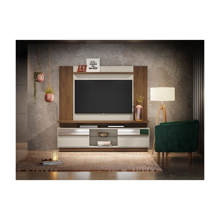 Conjunto Rack Recife e Painel Off White/Nogueira com LED - Linea Brasil