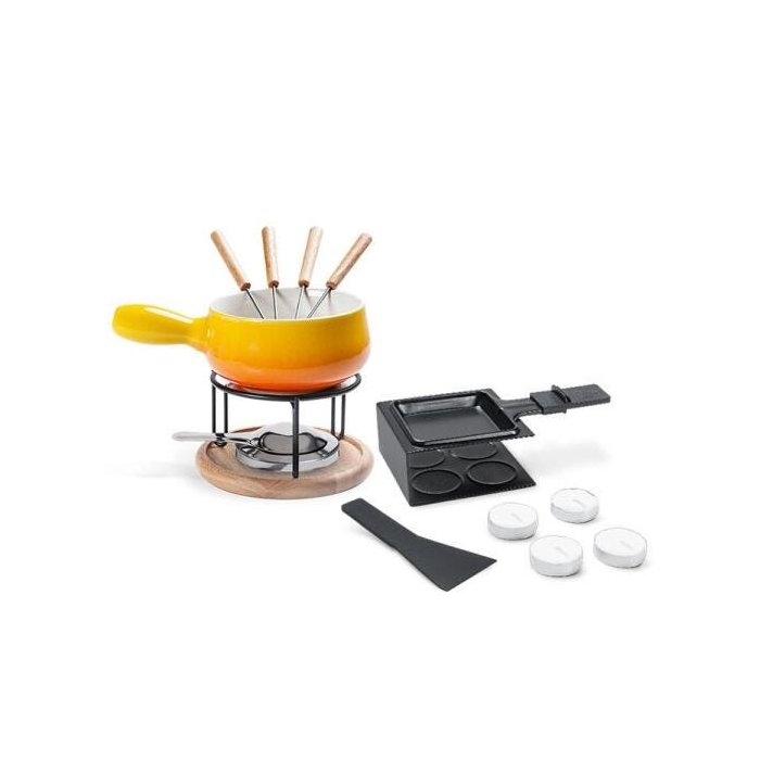 Conjunto Raclette Preto e Fondue Amarelo 16 peças Brinox