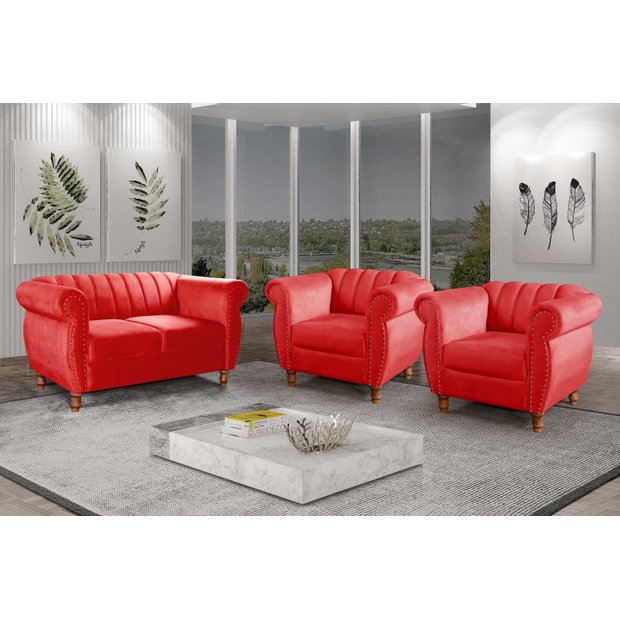 Conjunto Realeza Sofá com Poltronas Chesterfield Decoração Vermelho