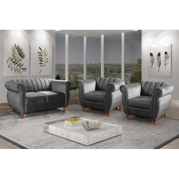 Conjunto Realeza Sofá com Poltronas Chesterfield Decoração Grafite/Cinza