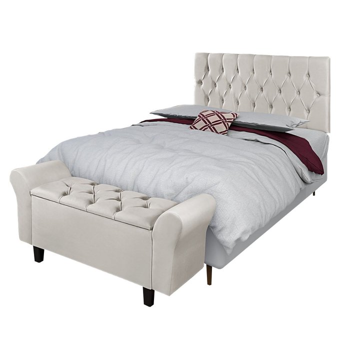 Conjunto Recamier Baú Sapateira e Cabeceira Lara 140 cm Moveis House Magia Bege Bege