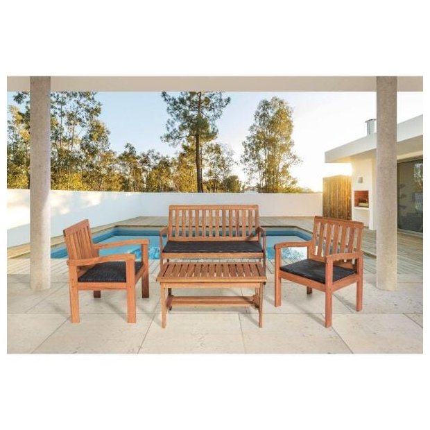 O Conjunto Robust é uma ótima escolha para complementar o seu jardim, varanda ou qualquer outra área da sua casa. Fabricado em madeira Lyptos Grandis, garante uma melhor segurança para bem acomodar sua família e amigos nos melhores momentos. Com o seu acabamento em Stein, fornece uma melhor qualidade ao conjunto. Para um melhor conforto e descanso, acompanha almofadas com tecido impermeável para serem colocadas sobre o assento de madeira das poltronas.