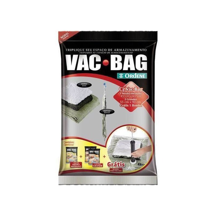 Conjunto Saco para Armazenagem a Vacuo Vac Bag Bomba + 1 Medio + 2 Grandes Ordene Or56200
