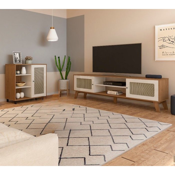 Conjunto Sala Charlotte: Rack 4675 + Buffet 4676 CINAMOMO C/OFF WHITE