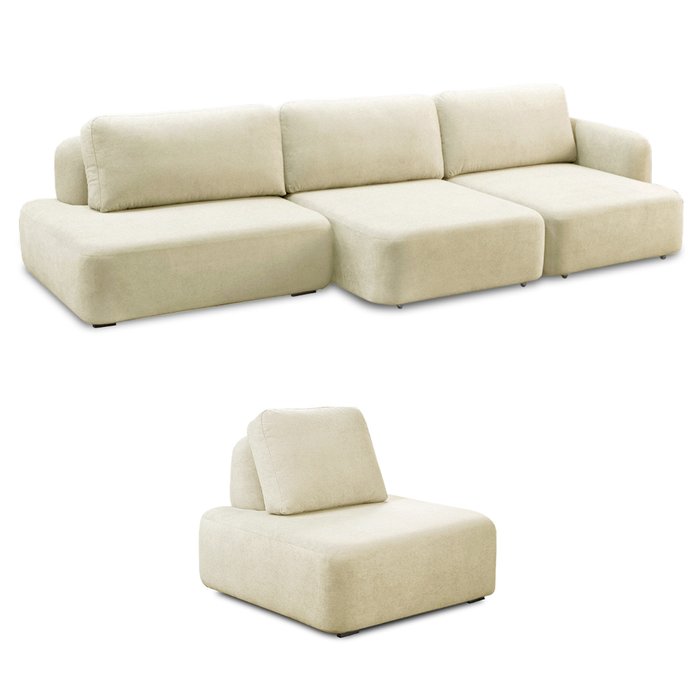 Conjunto Sala de Estar 1 Sofá Retrátil Modulado 372cm e 1 Poltrona Santiago Bouclê Off White G89 - G Off White