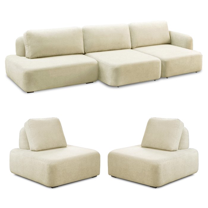 Conjunto Sala de Estar 1 Sofá Retrátil Modulado 372cm e 2 Poltronas Santiago Bouclê Off White G89 - Off White