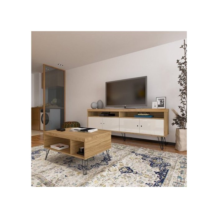 Conjunto Sala de Estar Completa para TV Até 65 Polegadas Rack e Mesa de Centro Liberty Carvalho/Off