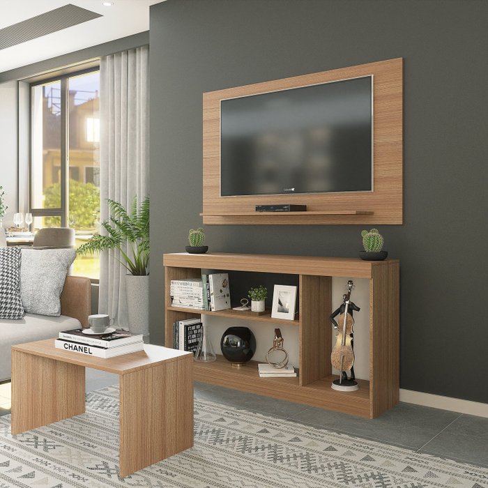 Conjunto Sala de Estar Dumont com Painel Para TV até 42 Polegadas Rack com 3 Nichos e Mesa de Centro
