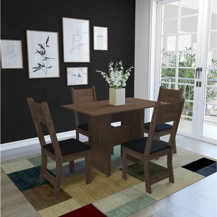 Conjunto Sala de Jantar 1 Mesa 4 Cadeiras Dublin Indekes Noce/Preto