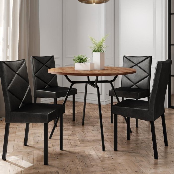Conjunto Sala de Jantar 4 Cadeiras Estofadas Osasco Carraro Preto