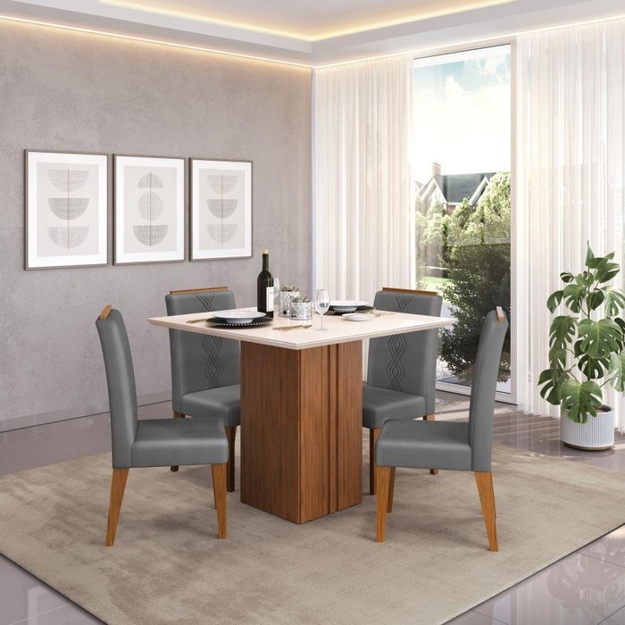 Conjunto Sala de Jantar 4 Cadeiras Yasmin Lunar Tampo de Vidro Kim Freijó Off White Dj Móveis