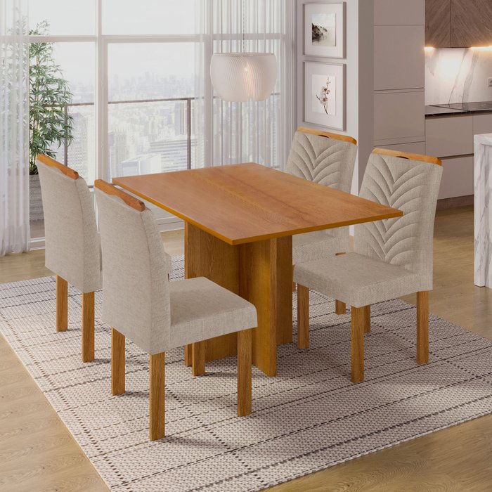 Conjunto Sala de Jantar 4 Lugares Retangular Tampo MDF com Mesa e Cadeiras Carol Cinamomo/Linho Bege