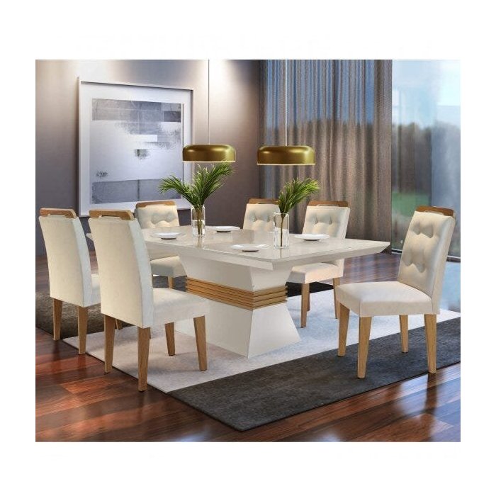 Conjunto Sala de Jantar 6 Cadeiras Rio Veludo Creme/Off White/Imbuia