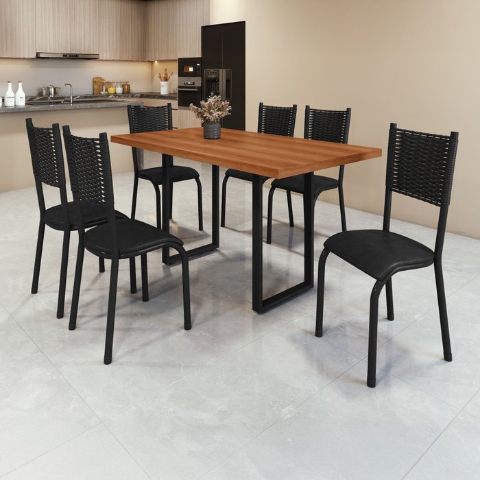 Conjunto Sala de Jantar 6 Lugares Mesa Tampo Madeira Bp 136x75cm Mariana