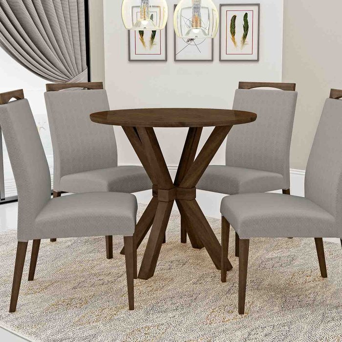 CONJUNTO SALA DE JANTAR ATENAS IMBUIA + MADEIRADO 110 C/4 CADEIRAS BETINA - BALI AREIA caede