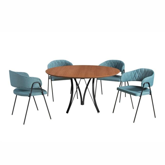 Conjunto Sala de Jantar Barcelona Amadeirado com 4 Cadeiras Veneza Metal Preto O Conjunto Sala de Jantar Barcelona tem o tampo redondo Amadeirado e a base em metal na cor preto e 4 cadeiras Veneza também com a base em metal preto, resultam em um móvel atraente, sofisticado e de muito bom gosto. O produto certo para tornar os momentos ao lado da família e dos amigos memoráveis. Especificações - Medidas do tampo: 77 (A) x 120 (L) x 120 (C) cm; - Medidas da cadeira: 81 (A) x 54 (L) x 45 (P) cm; - Cor do Tampo: Cinamono; - Cor da Base: Preto; - Material do tampo: MDF e metal; - Material da cadeira: Tecido linho, metal; - Acabamento: Pintura epóxi; - Tecido linho na cor verde; - Necessita de montagem: Sim; - Complexidade da Montagem Média: pode ser montado por mais de uma pessoa e/ou necessite de maior conhecimento para montagem; - Peso do produto: 49 kg.