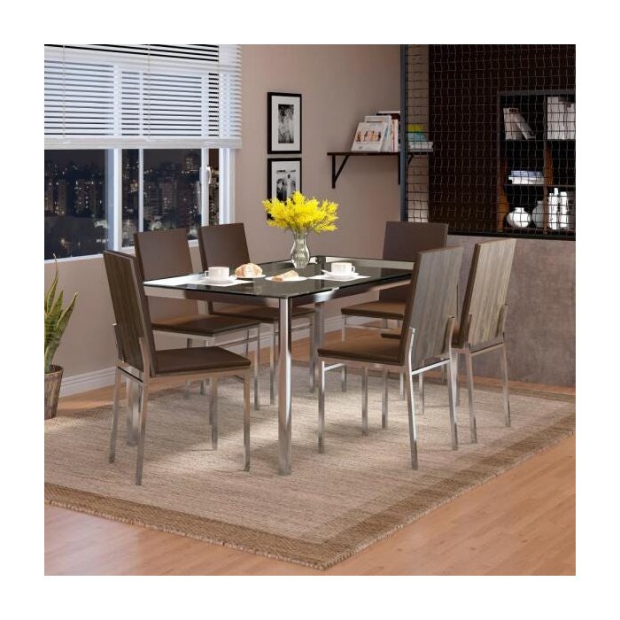 O Conjunto Sala de Jantar Niterói Carraro reúne materiais que transmitem sofisticação para as peças. com linhas retas e cores escuras, consegue combinar facilmente com diversas decorações, trazendo também o toque moderno e jovial do cromado para o ambiente.