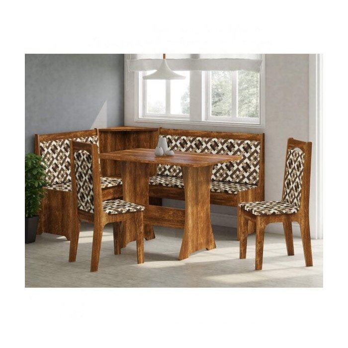 Conjunto Sala de Jantar com Mesa, Canto Alemão e 2 Cadeiras Viva Sonetto Móveis Rústico