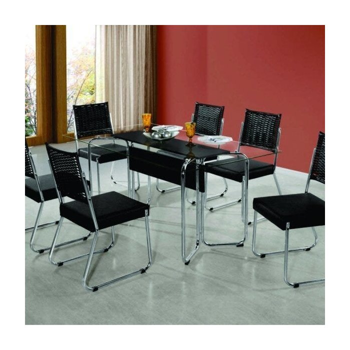 Conjunto Sala de Jantar com Mesa Kenia 6 Cadeiras Formato Aço Nobre Preto/Cromado