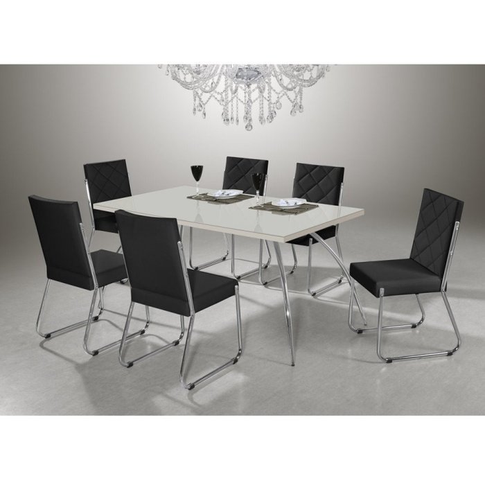Conjunto Sala de Jantar com Mesa Millenium 6 Cadeiras Deise New Aço Nobre Preto/Bege
