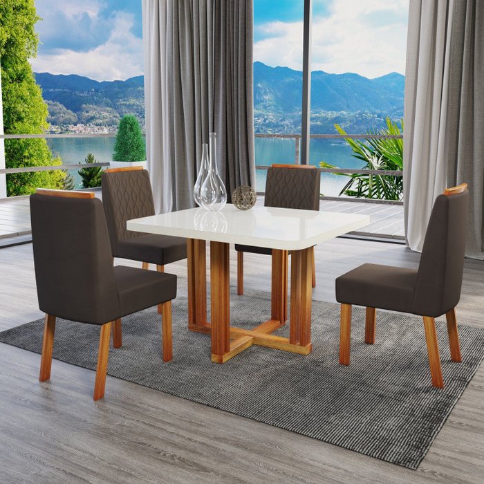 Conjunto Sala de Jantar com Tampo Mdf/vidro 90cmx90cm Mesa Paolla com 4 Cadeiras Viena Luxo Naturalle/Marrom
