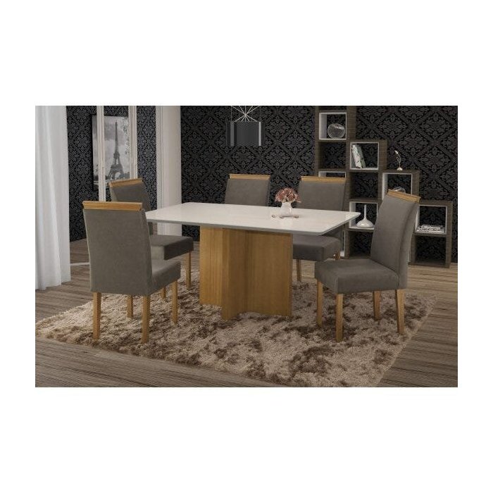 Conjunto Sala de Jantar em Madeira Maciça Mesa Pérola 6 Cadeiras Amanda Espresso Móveis Imbuia Natural/Suede 70