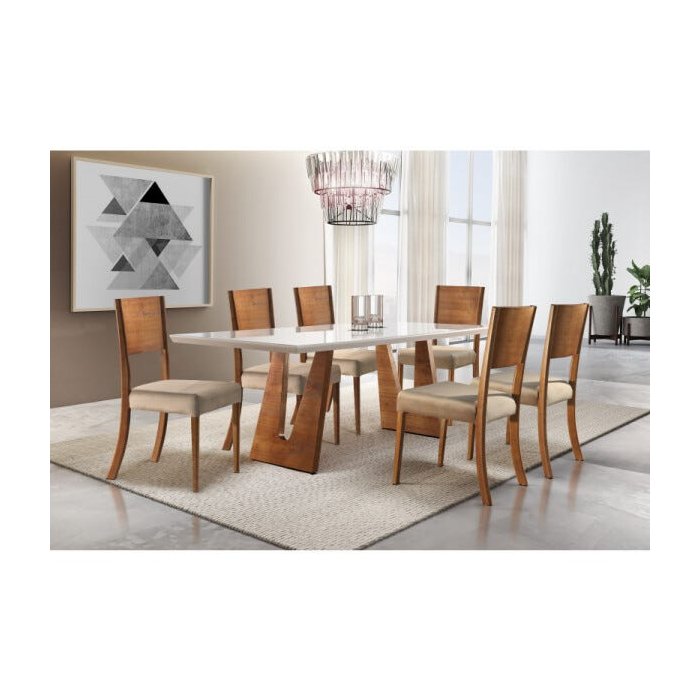 Conjunto Sala de Jantar Escócia com 6 Cadeiras Mobillare Castanho/Off White
