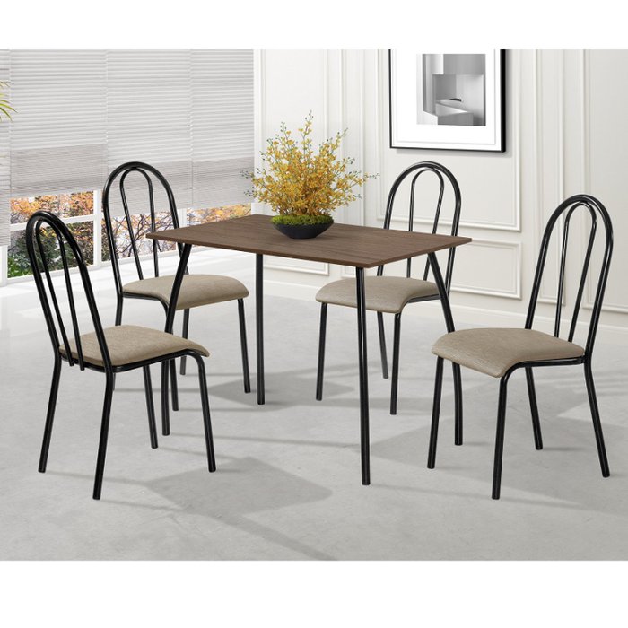 Conjunto Sala de Jantar Mesa 100x60cm com 4 Cadeiras Flora Preto/Marrom/Bege
