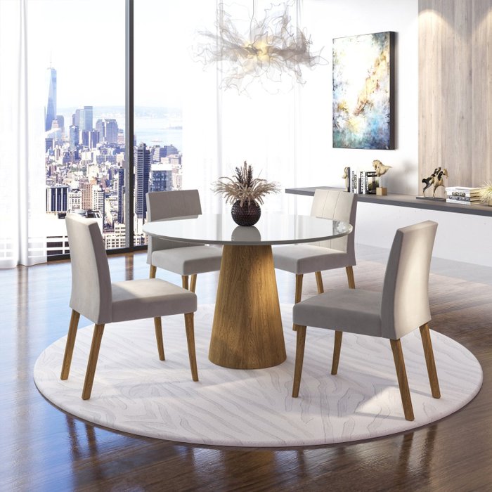 Conjunto Sala de Jantar Mesa 110x110cm Vidro com 4 Cadeiras Jasper Cristal Naturalíssimo/Branco/Cinza