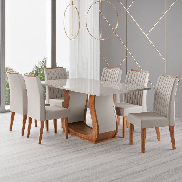 Conjunto Sala de Jantar Mesa 160x80,8cm Tampo com Vidro 6 Cadeiras Inspirare