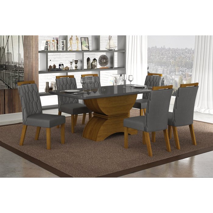Conjunto Sala de Jantar Mesa 180cm com 6 Cadeiras Atenas Leifer