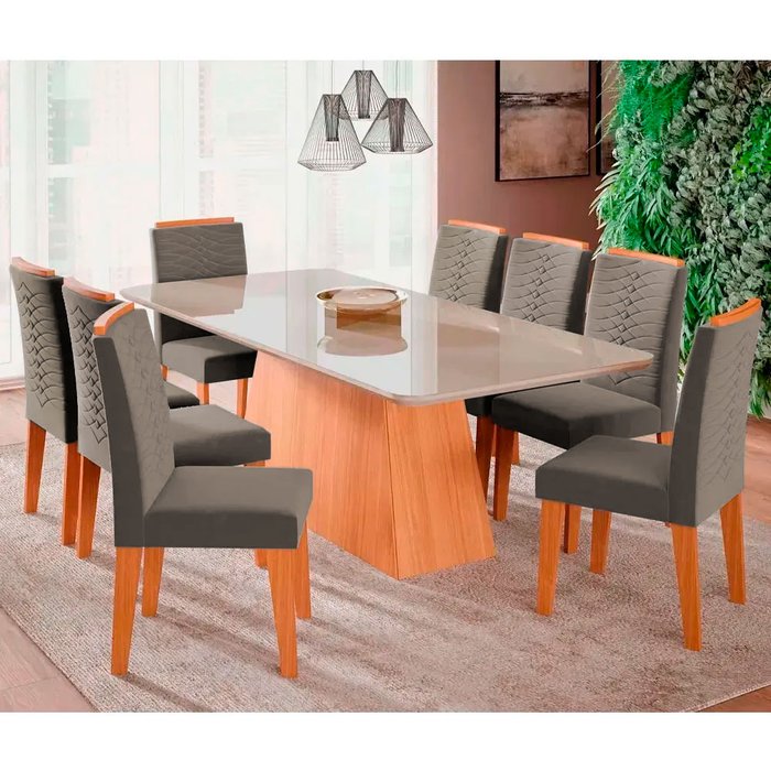 Conjunto Sala de Jantar Mesa 210x100 Cm e 8 Cadeiras Clarice Nature/off White/joli Cimol