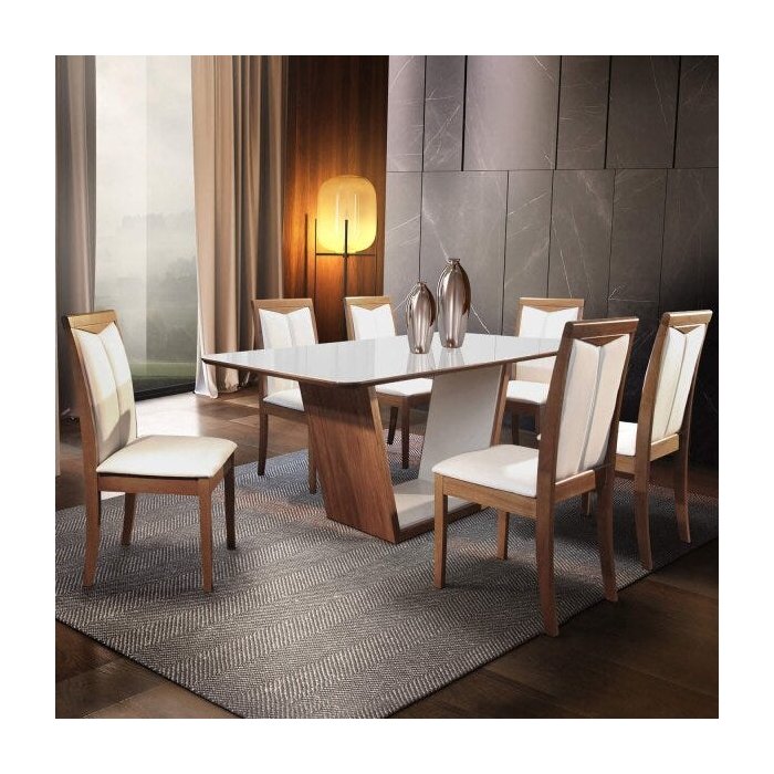 Conjunto Sala de Jantar Mesa 6 Cadeiras Milan Matos e Lopes