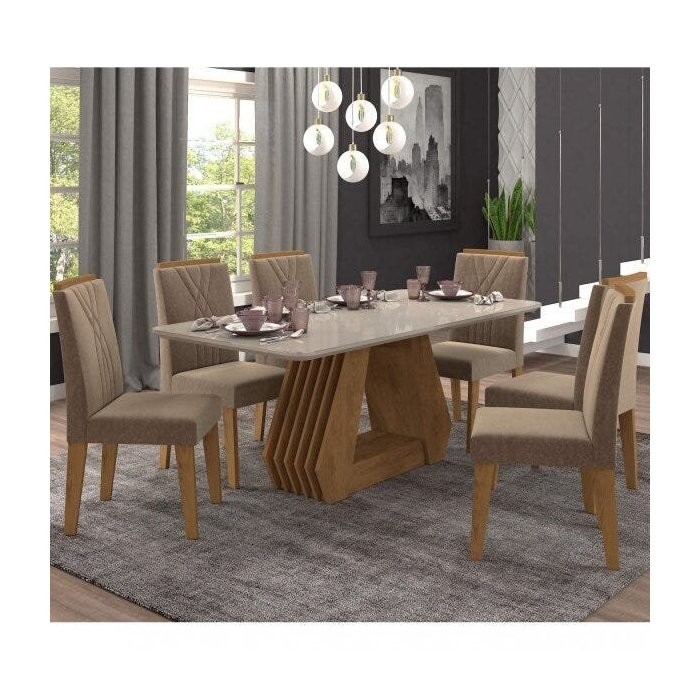 Conjunto Sala de Jantar Mesa Ágata 180cm e 6 Cadeiras Nicole Cimol