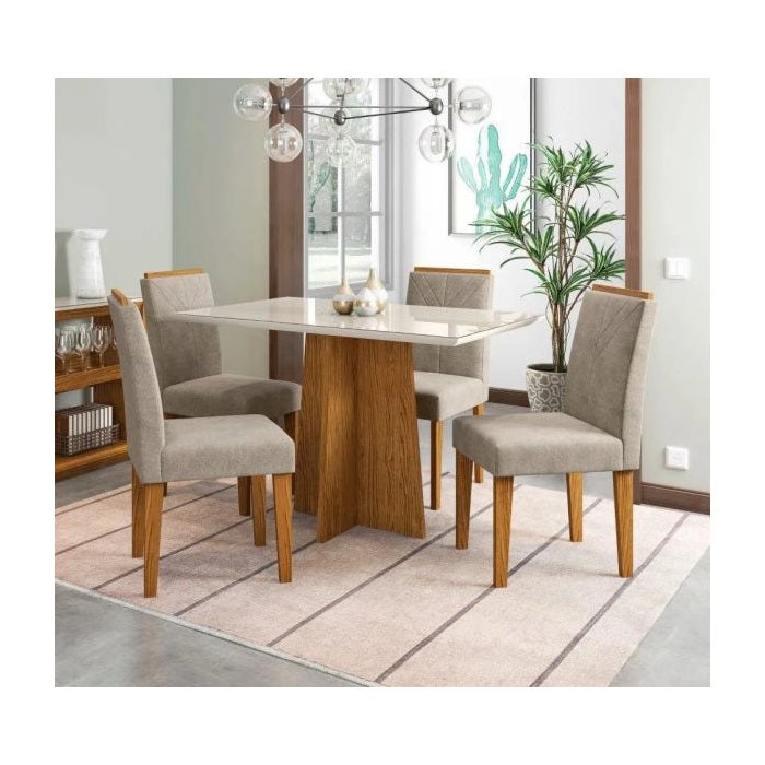 Conjunto Sala de Jantar Mesa Ana 1,20m com 4 Cadeiras Amanda - New Ceval