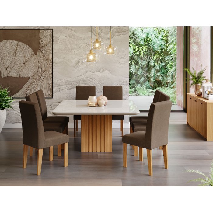 Conjunto Sala de Jantar Mesa Ana 130x130 cm e 8 Cadeiras Maia Nature/Off White/Mascavo Cimol