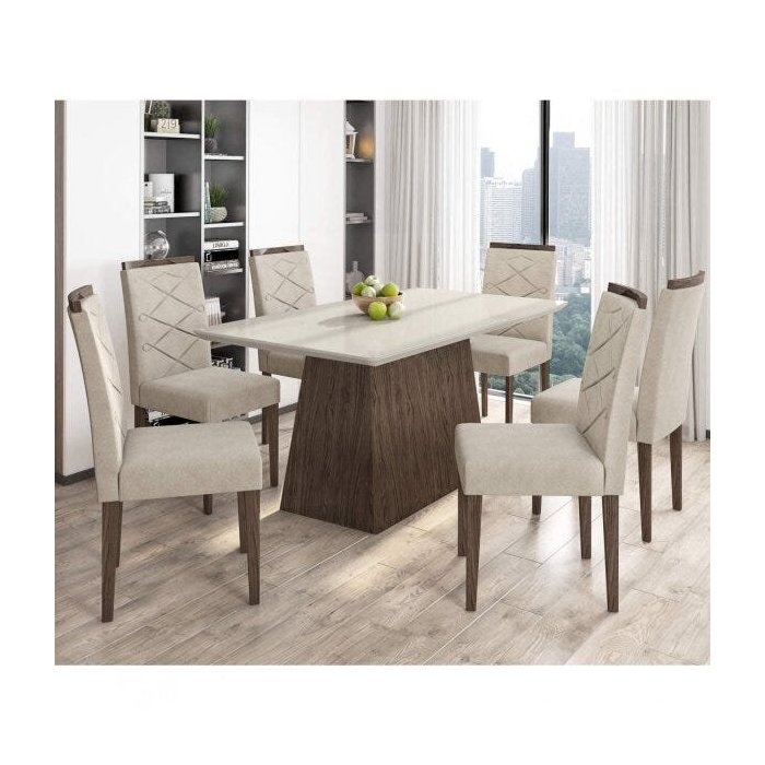 Conjunto Sala de Jantar Mesa Bárbara 6 Cadeiras Caroline Espresso Móveis Castanho/Off White
