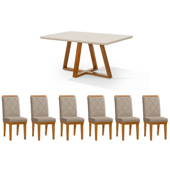 Conjunto Sala de Jantar Mesa Bela Tampo Vidro/MDF com 6 Cadeiras