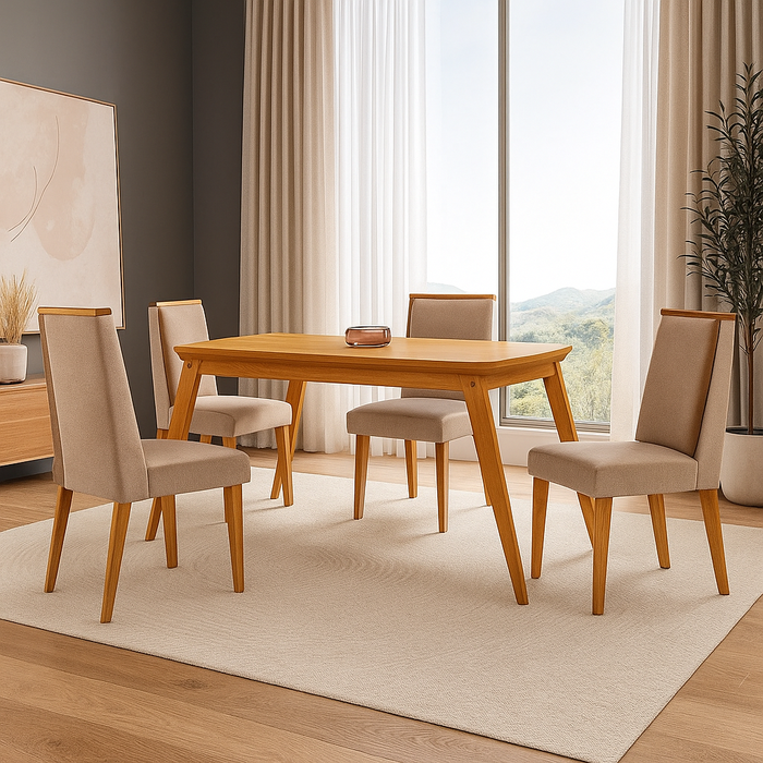 Conjunto Sala de Jantar Mesa com 4 Cadeiras 120cm Cleo Merlim Linho Capuccino / Tork / Naturalle / Off White