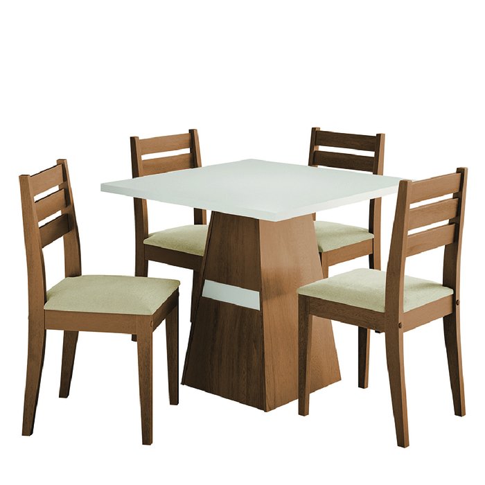 Conjunto Sala de Jantar Mesa Dakar 0,90m 4 Cadeiras Cedro / Off White / Bege Dobuê